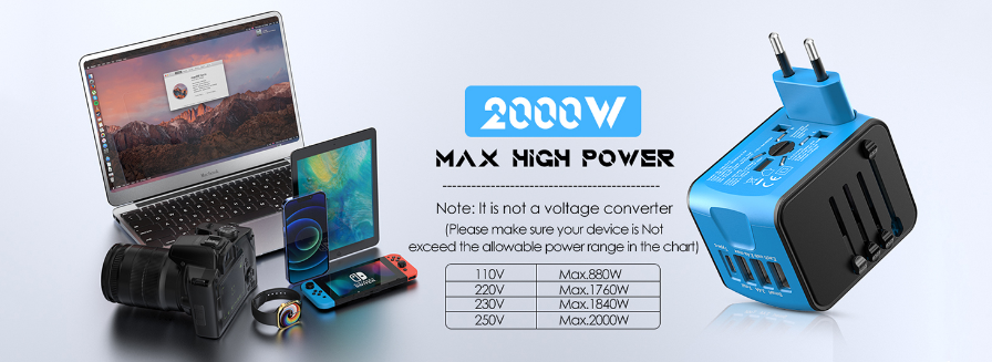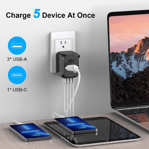 In der heutigen vernetzten Welt bedeutet Wanderlicht nicht ohne Ihre Auswahl an wesentlichen Geräten. Wir erkennen das Bedürfnis des modernen Reisenden, angetrieben zu bleiben, nicht nur auf einem Gerät, sondern auf vielen. Hier tritt unser universeller Reiseadapter ein, der mit dem Multi-Device-Benutzer entworfen wurde. Sie müssen nicht mehr priorisieren, welches Gerät zuerst aufladen oder zwischen verschiedenen Ladegeräten versetzt werden. Mit mehreren integrierten USB -Anschlüssen und einem universellen Socket ermöglicht unser Adapter gleichzeitig das Aufladen für alles, von Ihrem Smartphone und Tablet bis zu Ihrer Kamera und Ihrem Laptop.