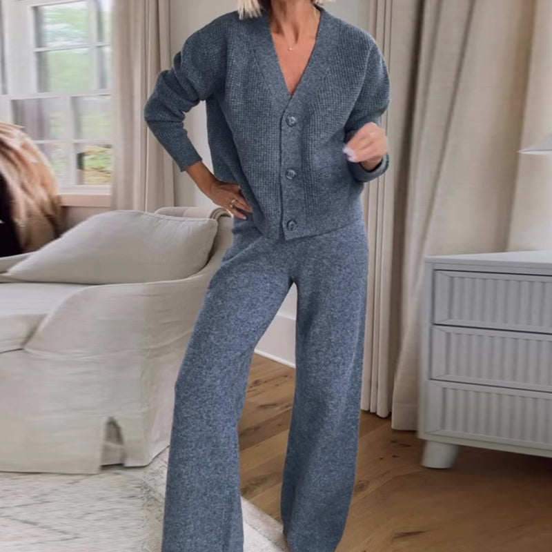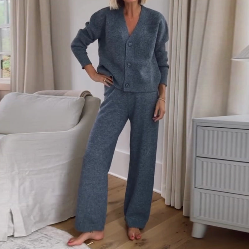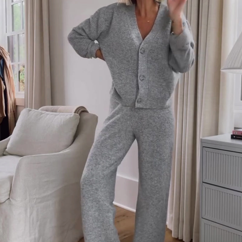 Package Included: 1 * Women's Comfortable V-Neck Cardigan & Pants Two-Piece Set