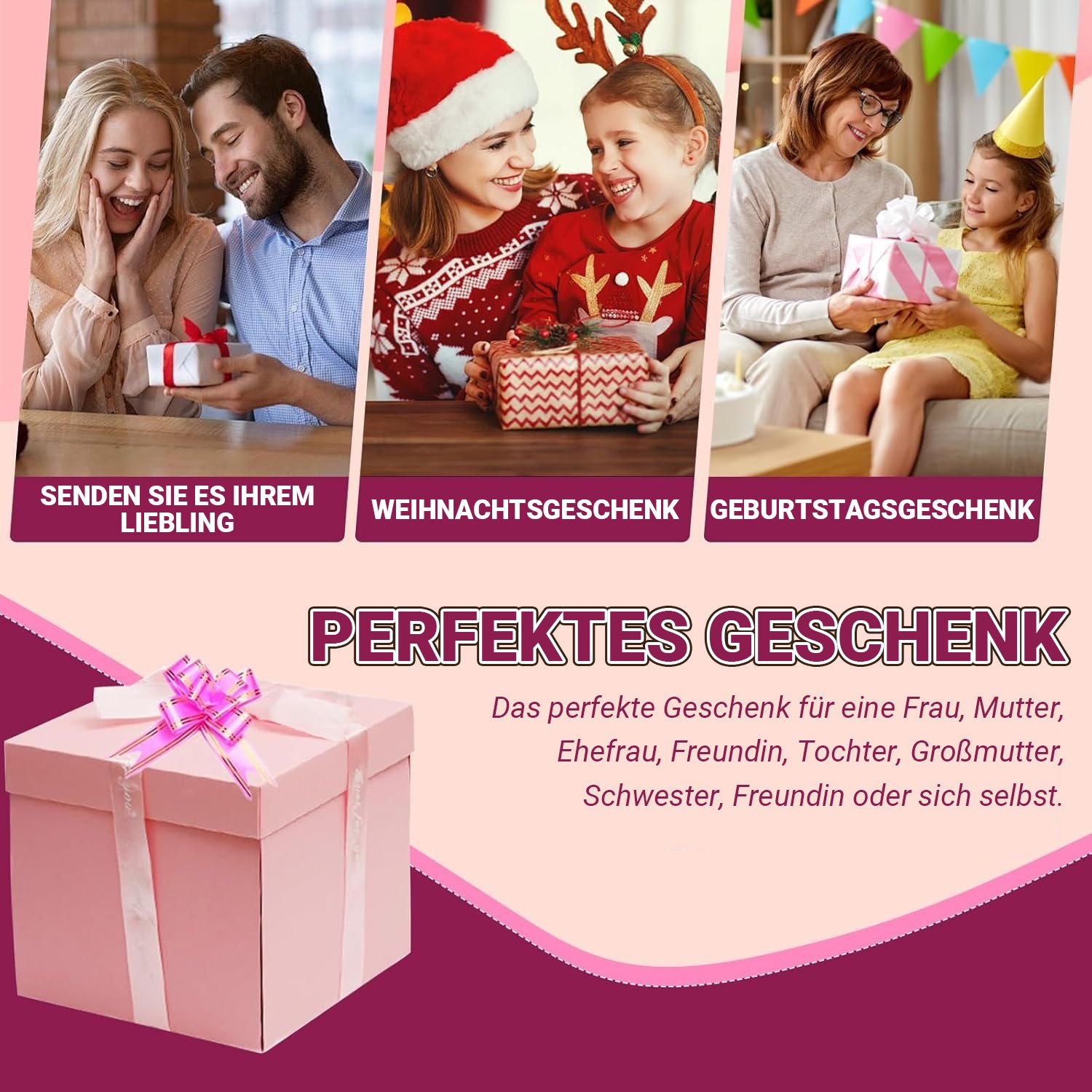 Personalisierter Erinnerungshalter: Verwandeln Sie diese Überraschungsbox in ein herzliches Geschenk, indem Sie Fotos, kleine Geschenke und handgeschriebene Nachrichten hinzufügen. Mit dem Design der Foto-Explosionsbox können Sie Ihre schönsten Momente präsentieren und sie so zu einem perfekten Andenken für Jahrestage, Geburtstage und besondere Anlässe machen.