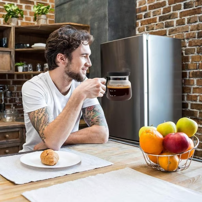 Dieses bezaubernde Design aus robustem Klarglas vereint Funktion und Spaß in einem unvergesslichen Paket. Ganz gleich, ob Sie einen Tee oder ein kühles Gebräu schlürfen, es bringt ein wenig Barista-Magie in jeden Moment.