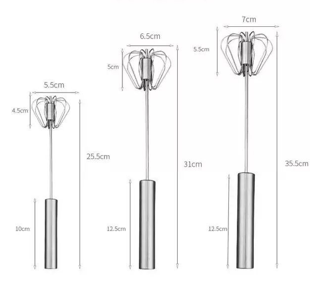 Spart Kraft und erledigt die Arbeit viel schneller als mit einem gewöhnlichen Schneebesen. Kein Strom oder Batterie erforderlich. Drücken Sie einfach den Griff nach unten und die Edelstahlklingen des Schneebesens drehen sich.