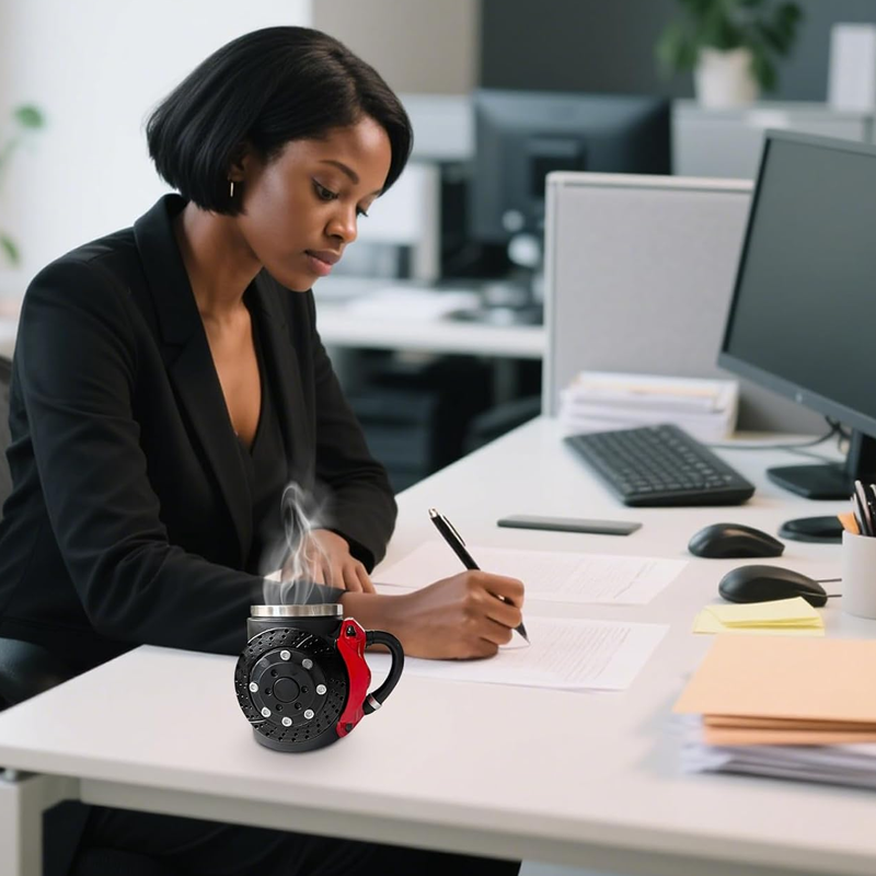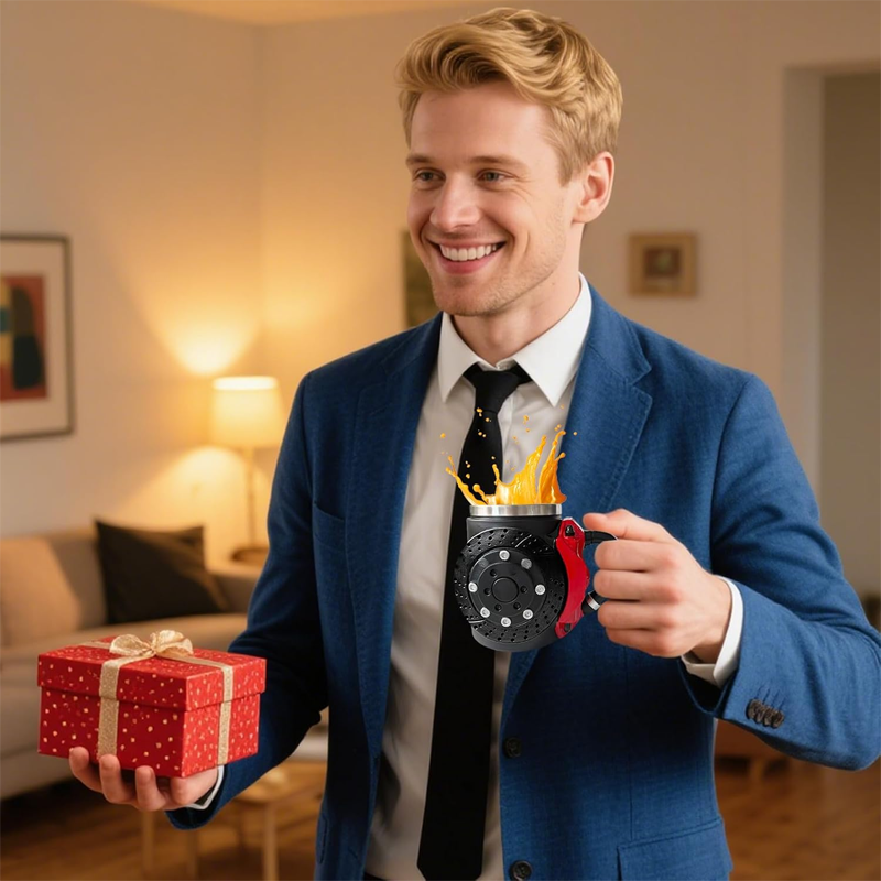 EINZIGARTIGE AUTOMOBIL-ÄSTHETIK – Zeigen Sie Ihre Leidenschaft für Autos mit einem auffälligen Design aus Bremsscheibe und rotem Bremssattel und verleihen Sie Ihrem Alltag einen markanten Touch. Diese Tasse ist ein echter Hingucker.
