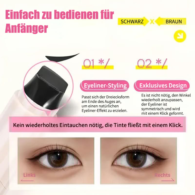 Nie mehr zittrige Hände und ungleichmäßiger Lidstrich! Mit dem drehbaren Eyeliner-Stempelstift gelingen dir im Handumdrehen präzise, gleichmäßige Lidstriche – ganz ohne Visagistin. Ideal für alle, die sich stressfrei und mühelos glamourös stylen möchten.