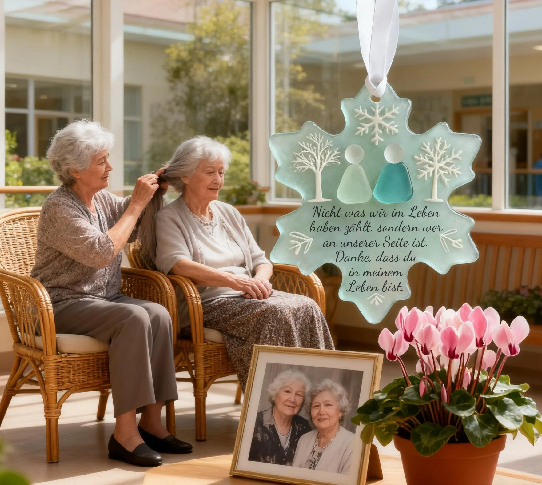 Dieses schneeflockenförmige Ornament ist eine lebendige Erinnerung an die besonderen Bande, die Freunde miteinander teilen. Verschenkt verwandelt es sich in ein wertvolles Andenken, das Lachen, Unterstützung und unvergessliche Momente feiert – all das, was wahre Freundschaft ausmacht.💝