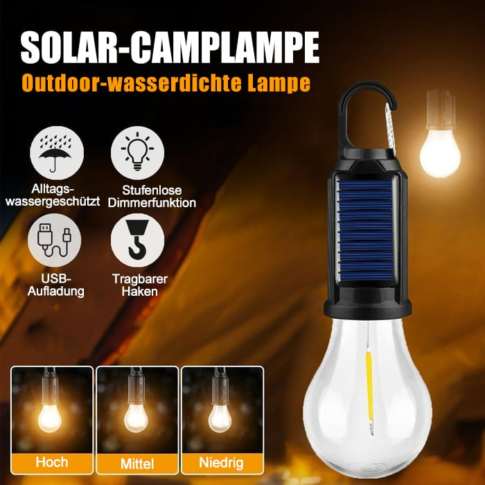 🔋 Wiederaufladbar über USB und Solar: Diese LED-Campinglaterne verfügt über einen eingebauten Akku und kann über USB und Solar wiederaufladbar sein.